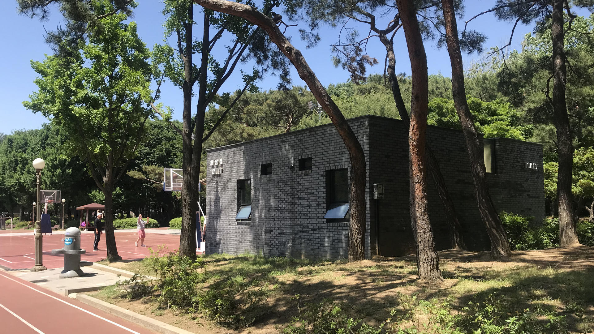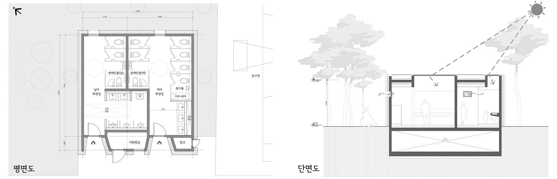 양재근린공원 정비사업의 일환으로, 조경위주의 계획 및 정비사업 중 유일하게 계획된 건축물로서의 공중화장실이다. 밀도높은 도심에서 주민들에게 녹지를 제공하는 근린공원 속의 유일한 건물이므로, 그야말로 자연경관에 가장 자연스럽게 존재하는 건축물로 계획하고자 하였다. 형태는 단순해졌으며, 재료는 친숙하고 작은 스케일의 벽돌로 결정되었다. 또한 건물 자체로의 드러남이 없는, 주변의 나무와 그 나무가 만들어내는 빛, 그림자에 그저 묻힐 수 있는 저채도의 색상인 전벽돌을 사용하게 되었다. 구청 일부 담당자는 공원에 너무 어두운 건물이 되지 않겠느냐는 우려가 있었지만, 주민설명회, 도시디자인심의 등에서 주변경관에 자연스럽게 어우러지며 드러남이 없는 건축물로 계획하고자한다고 설득하여, 긍정적인 반응을 얻어낼 수 있었다. 천창은 풍경으로서의 건축물에 힘을 실어준다. 낮에는 내부에 채광과 풍경을 끌어들이며, 저녁에는 천창을 통해 나오는 빛으로 외부에 존재감을 슬며시 드러낸다. (공중화장실임을 드러내긴 해야한다.) 언제부턴가 원래 거기 있었던 듯, 그저 가만히 풍경으로서의 건축물로 존재하길 바란다.